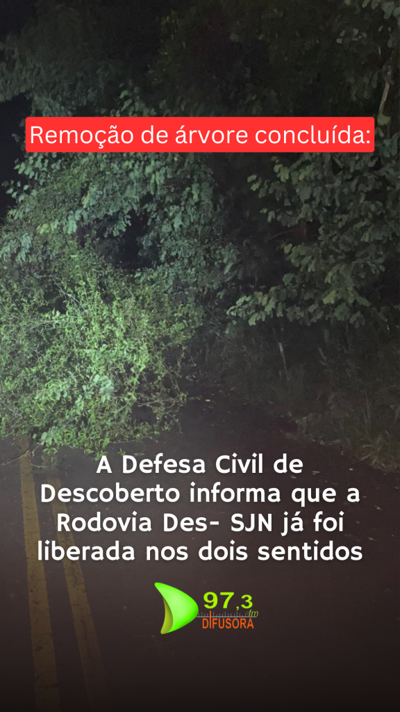 A Defesa Civil do município de Descoberto realizou uma operação emergencial para remover 11 árvores caídas após um forte temporal que atingiu a região.